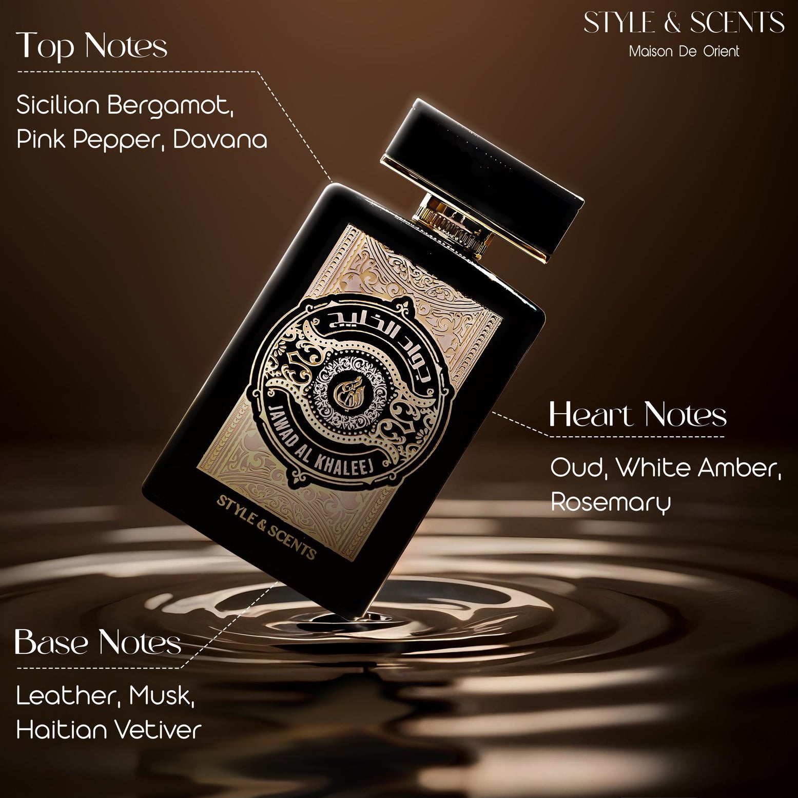 JAWAD AL KHALEEJ by Style & Scents Maison De Orient is a captivating unisex Eau De Parfum that harmoniously blends Western vibrance with Eastern opulence. Designed for those who desire a fragrance that is both bold and refined, this composition delivers a luxurious, long-lasting olfactory experience.
